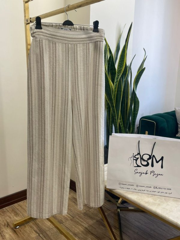 شلوار کمردار و پشت آن برای راحتی در سایزبندی کش بکار رفته است.