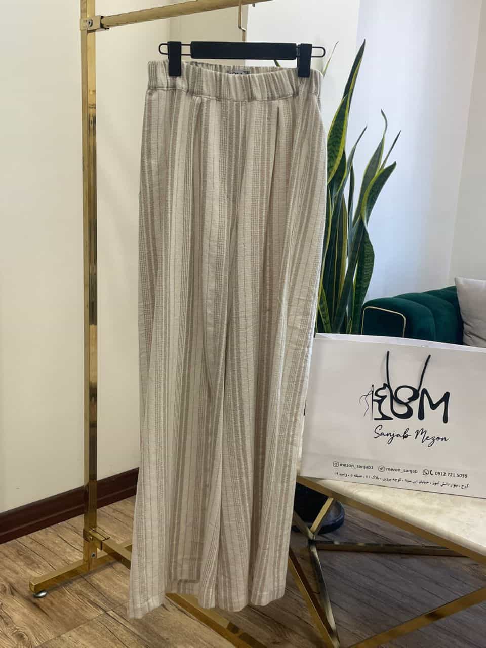 شلوار کمردار و پشت آن برای راحتی در سایزبندی کش بکار رفته است.