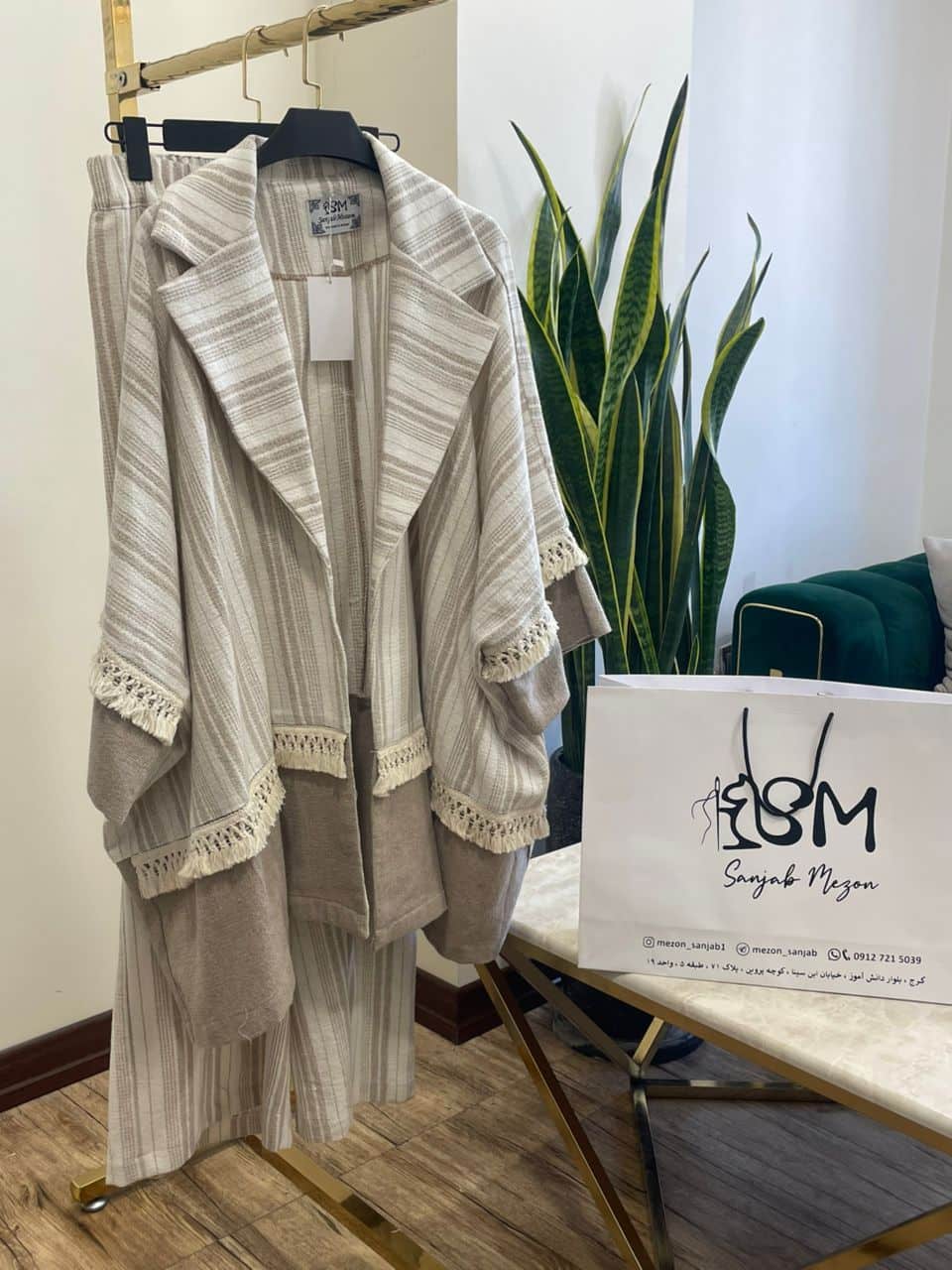 ست پانچ کتی و شلوار در دو رنگ آدامسی و قهوه ای موجود میباشد.