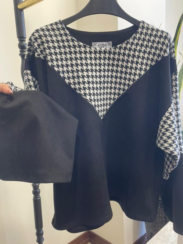 نمونه بلوز زمستانه، فری سایز می باشد و مناسب تا سایز 42 است.