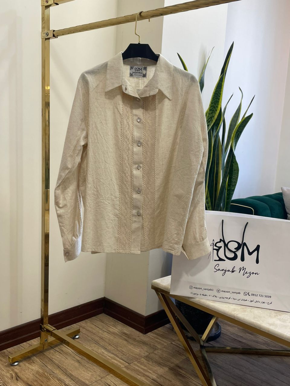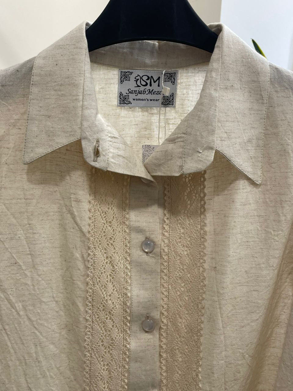 نمونه شومیز مجلسی لینن فری سایز و مناسب تا سایز 42 است.
