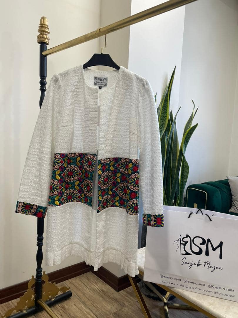 نمونه مانتو خامه دوزی سنتی، فری سایز میباشد و مناسب تا سایز 40 است.