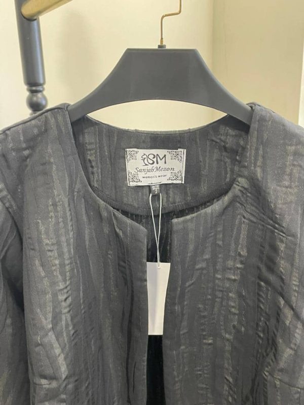 نمونه مانتو مجلسی ژاکارد فری سایز میباشد و مناسب تا سایز 40 است.