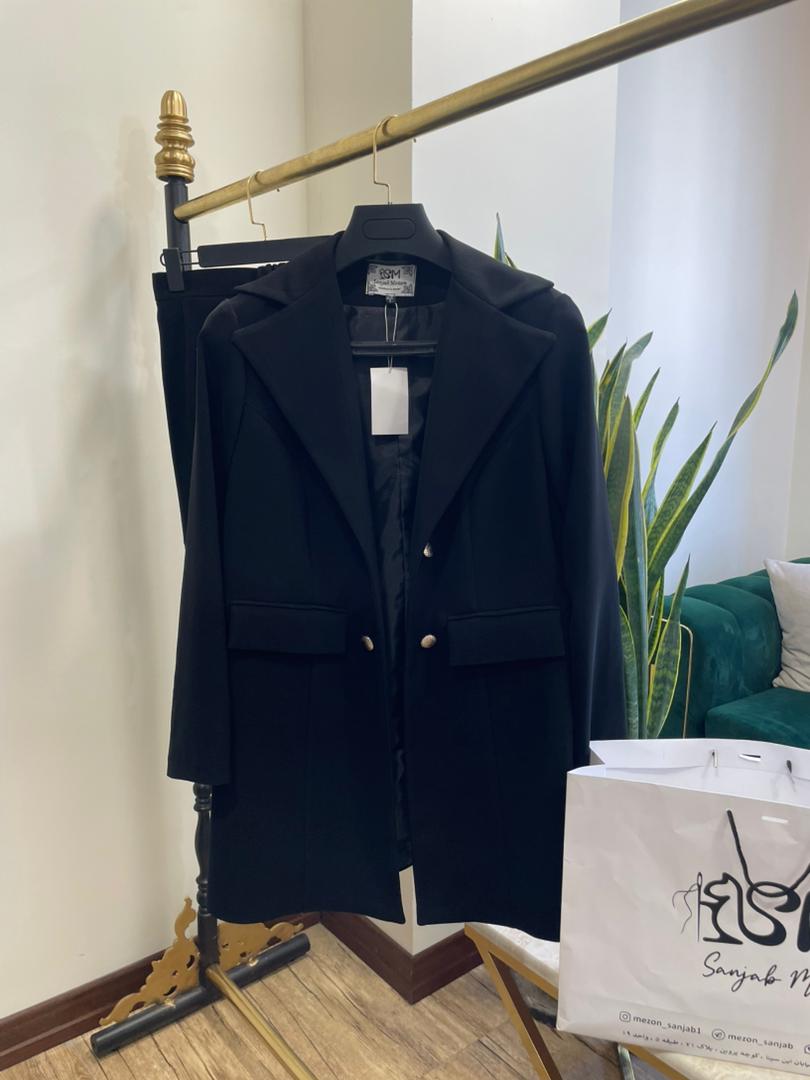 نمونه کت شلوار مجلسی زنانه مشکی در دو سایز 46 و 48 موجود میباشد.